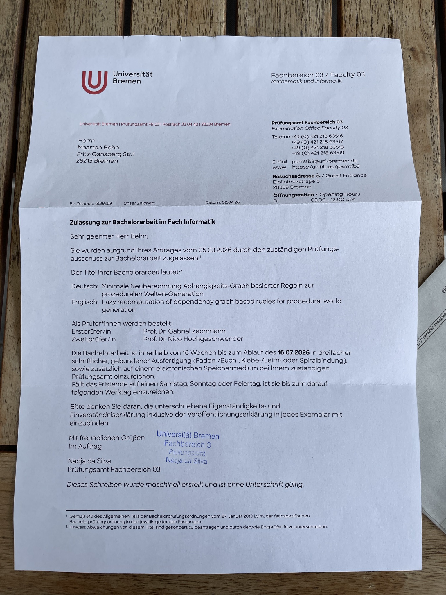 Anfrage BA Zweitprüfer