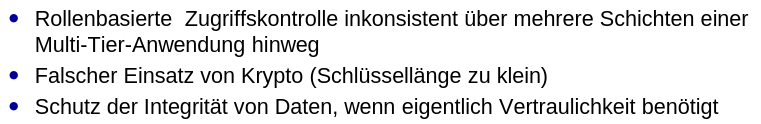 Sicherheitsprobleme Designfehler (Flaws) 50% aller Sicherheitsprobleme von Software laut McGraw Beispiele