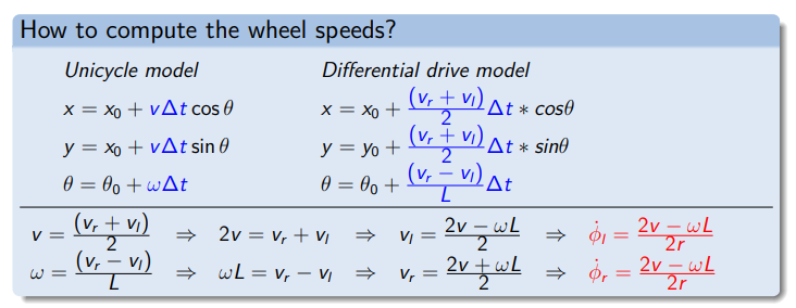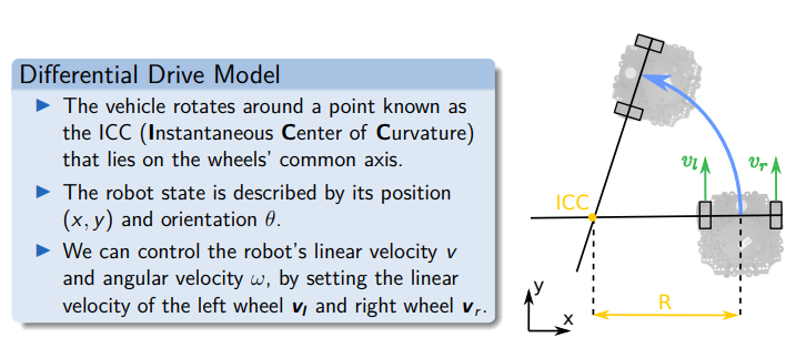 From a point robot to two wheels Instead of a point robot, the TurtleBot is now modeled as a robot with:
