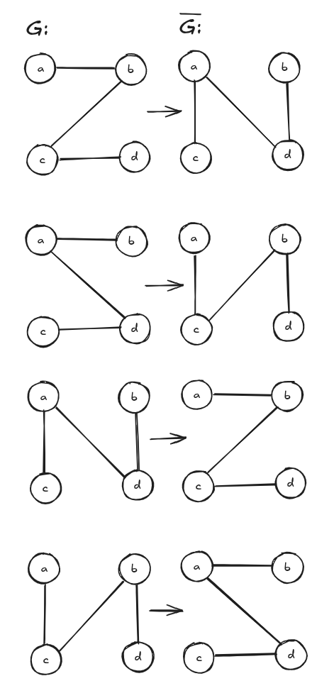 - Find all self-complementary graphs with at most 4 vertices. (3 Punkte)