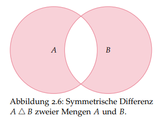 Die symmetrische Differnz zweier Mengen A und B ist die Menge aller Elemente von , welche nicht in liegen.