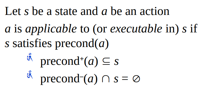 - Applicability of an action to a state