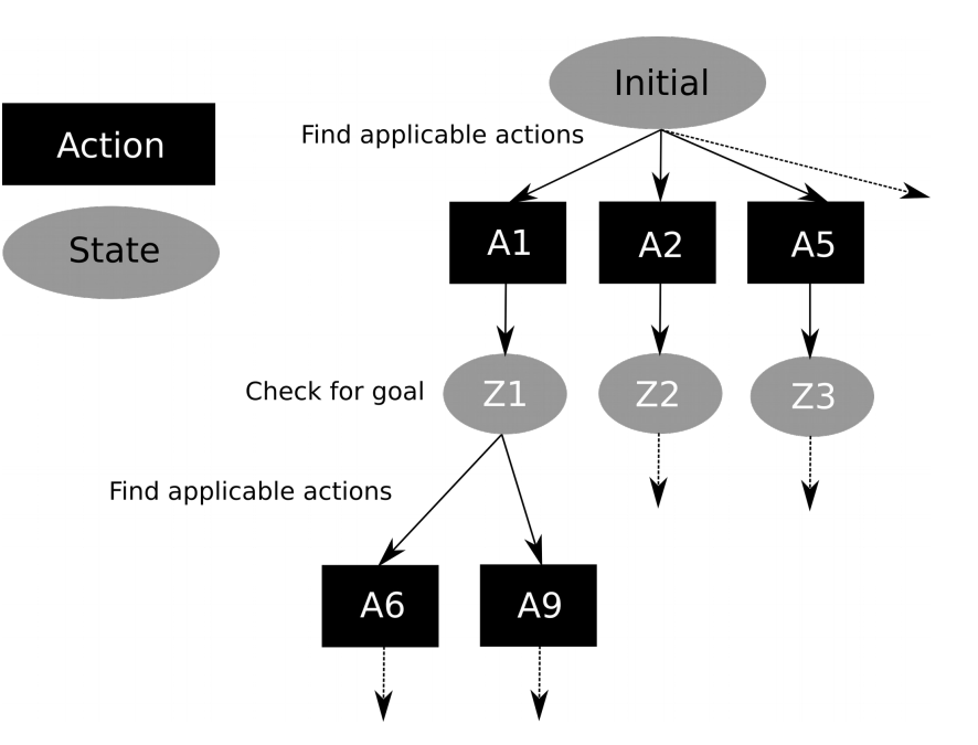 - If not, the algorithm applies all applicable actions to the initial state to produce new states.