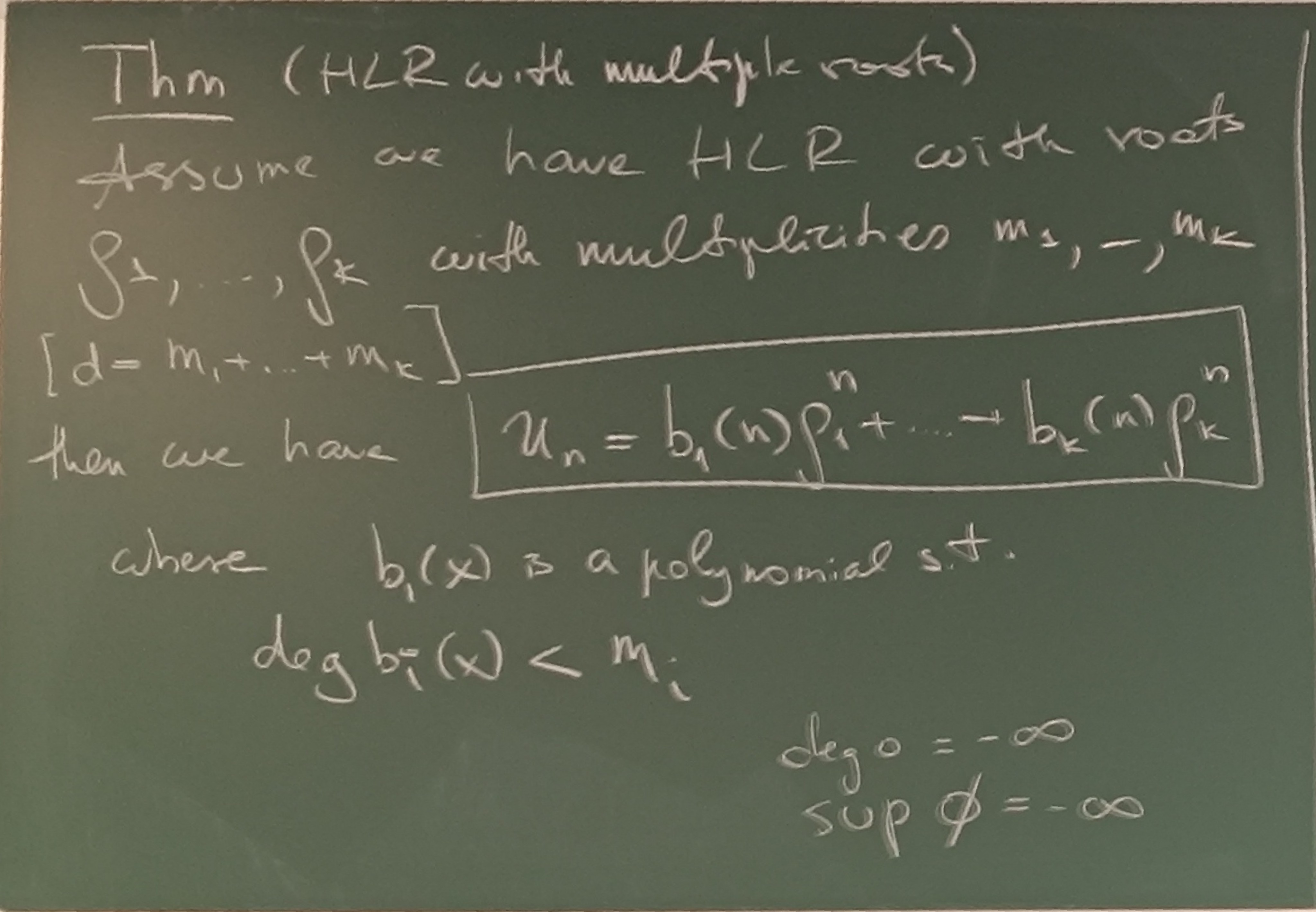 Homogenous linear recursion with multiple roots