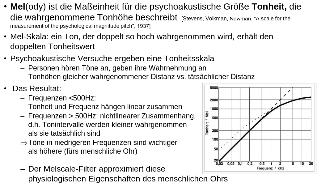 Sprache wird höhe wird im Gehör nicht linear wahrgenommen < 500 Hzlinear > 500 Hz nicht linear