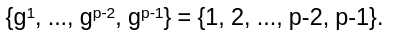 Wähle einen Wert g, der primitive Wurzel von p ist