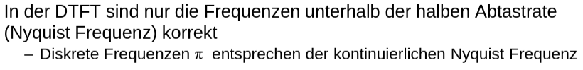 Nur Frequenz der halben Abtastrate (Nyquist-Frequenz) sind kontinuierlich